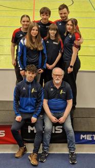 Erfolgreich in Kaiserslautern: Von links - hinten: Johanna Sommer, Florian Leppert, Marco Garbe; Mitte: Mia Cataldi, Lotta Böhmer, Charlotte Sommer; vorn: Jürgen Hartmann, Hermann Hartmann