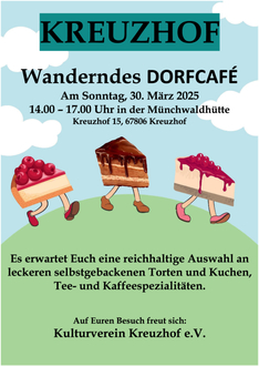 Am Sonntag, den 30. März 2025 findet das Dorfcafé in und um die Münchwaldhütte auf dem Kreuzhof statt.