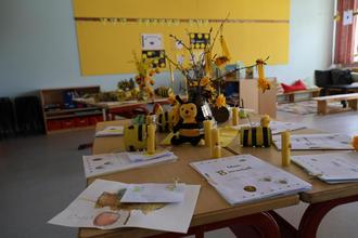 Einmal täglich wurde dann für den großen Auftritt am Schulfest geprobt. Gedichte, lustige Bienensprüche und ein kleines Theaterstück konnte