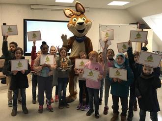 Dazu kam Känguruhase Blicki persönlich in die Schule und brachte für alle Schüler:innen verschiedene Workshopstationen rund um einen echten LKW mit. Zunächst wurden die Kinder mit der Blicki-Geschichte in den Tag eingeführt. Verpackt in eine Einkaufstour von Blicki lernten sie dabei die typischen Gefahren im Straßenverkehr kennen und insbesondere die, welche von LKW ausgehen können. Auf dem Hof ging es dann mit den Aktivitätsstationen weiter. Zunächst wurde den Kindern mit einem Laufspiel eindrucksvoll vor Augen geführt, was es mit dem Bremsweg auf sich hat und warum man besser wartet, bis ein Fahrzeug endgültig steht, bevor man die Straße überquert. Anschließend durften die Kinder abwechselnd in den LKW steigen und die Erfahrung machen, dass Kinder, die direkt vor oder im Toten Winkel neben einem LKW stehen, für den Fahrer nicht sichtbar sind und sogar eine ganze Klasse einfach „verschwinden“ kann. Zum Schluss konnten die Kinder ihr Wissen beim Blicki-Quiz unter Beweis stellen. Jede Klasse erhielt ein Blicki Maskottchen, das uns noch lange an den Blicki Workshop erinnern wird.