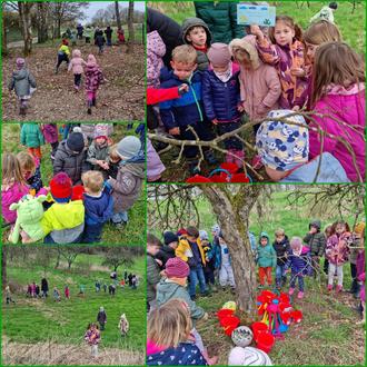Die Kinder der Kita Mehlbach haben dieses Jahr an Ostern ein großes gemeinsames Osternest ausserhalb der Kita gebaut.