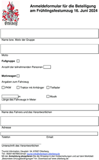 Eine Teilnahme am Umzug ist nur mit schriftlicher Anmeldung möglich.