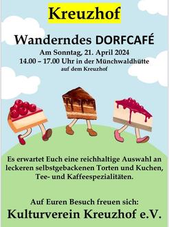 Am Sonntag, den 21.04.2024 findet das Dorfcafé in und um die Münchwaldhütte auf dem Kreuzhof statt.