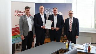Innenminister Ebling hat mir im Rahmen einer Feierstunde den Förderbescheid „Digitale Dörfer Euro überreicht.