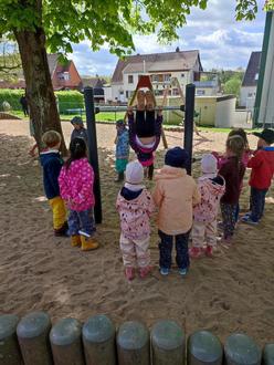 Schon vor Jahren machte er es möglich, dass die Kinder einen neuen großen Kletterturm mit Rutschbahn erhielten. Nun war es mal wieder so weit. Das Schaukelmotorrad und die beliebten Reckstangen waren in die Jahre gekommen und mussten abgebaut werden. Groß war das „Geheule“ über den Verlust. Zum Glück aber gibt es den Förderverein, der es möglich machte, dass die fehlenden Spielgeräte durch neue ersetzt wurden. Die Freude darüber ist riesig. Mit Adleraugen wurde die Firma Kotzan beim Einbau beobachtet und nach der Fertigstellung gab es kein Halten mehr. Alles wurde ausprobiert und für gut befunden. Daher möchten sich die Kinder und Erzieher-/innen beim Förderverein auf diesem Weg ganz herzlich bedanken.