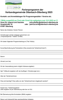 in diesem Jahr möchten wir Sie gerne wieder einer Beteiligung am Sommerferienprogramm in der Verbandsgemeinde Otterbach-Otterberg befragen.