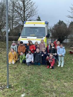 Zum Abschluss hatten die Kinder die Gelegenheit einen Rettungswagen zu besichtigen. Zwei Rettungssanitäter vom ASB begleiteten die Kinder dabei.
