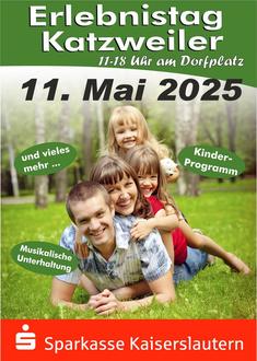 Am 11.05.2025 ist der vitale Ort Katzweiler wieder Schauplatz eines kunterbunten Angebotes für groß und klein. Von 11:00 - 18:00 Uhr wird der ganzen Familie auf dem Dorfplatz eine Menge Programm geboten. Vereine, Aussteller und Betriebe präsentieren sich auf dem Dorfplatz mit Informations- und Verkaufsständen. Die großen Gäste finden dort zahlreiche Dinge, von Handarbeitsbedarf, Serviettentechnik, Töpferware, Schinken- und Rohwurst-Spezialitäten, Solinger Schneidwaren, Naturbürsten, Honig bis zu Haka-Produkten. Ebenso vertreten ist eine Autoausstellung vom Autohaus Toyota Henn. Für die kleinen Gäste ist am Dorfplatz mit dem Angebot des Reit- und Fahrverein Lautertal auch einiges geboten. Für das leibliche Wohl ist mit Kaffee/Kuchen, Waffeln, gefüllten Klößen, Bratwurst, Pommes, Chili con carne gesorgt. Auch werden Getränke wie Bier, Wein und Alkoholfreies angeboten. Von 12:00 - 17:00 Uhr sorgt die Band „Ruppert spielt“ für die musikalische Unterhaltung.