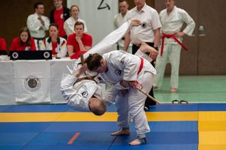 Ein besonderer Moment war als Harald Westrich, erster Vorsitzender des Vereins, der 7. Dan im Jiu Jitsu verliehen wurde. Präsident des Verbandes Josef Djakovic und Ehrenpräsident Dieter Lösgen zeichneten Westrich damit für seine besonderen Verdienste für den Verband aus.