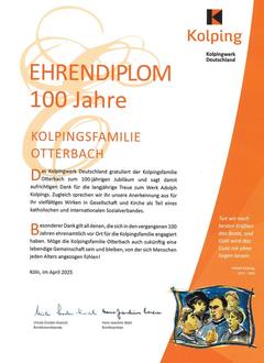 Besonderer Dank gilt all denen, die sich in den vergangenen 100 Jahren ehrenamtlich vor Ort für die Kolpingsfamilie engagiert haben. Möge die Kolpingsfamilie Otterbach auch zukünftig eine lebendige Gemeinschaft sein und bleiben, von der sich Menschen jeden Alters angezogen fühlen!