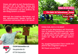 Anmeldung und Infos unter: camp@cvjm-katzweiler.de