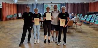 Im Bild (von links nach rechts) Clemens Schitter (Vorstand der Turnabteilung), Brigitte Scheidel, Iris Ultes, Trygve Haag und Isolde Scherer.