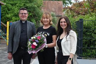 In einem liebevoll geschmückten Turnraum begrüßten die Kinder mit den Erzieher:innen und Herrn Pfarrer Hartmüller Elisabeth in ihrer Mitte. Frau Afina Trobsch, die Kita-Leitung der Kita Regenbogenland, eröffnete mit ein paar liebevollen Worten die kleine Feier. Die Vorschulkinder überreichten Elisabeth selbstgebastelte Herzen mit Danksagungsworten, denn die vielen Dienstjahre haben eine Spur im Herzen aller hinterlassen. Im Anschluss sangen alle gemeinsam ein Abschiedslied für Elisabeth und packten dabei eine Rentnerrinnen-Box mit allerlei Utensilien, die man im Ruhestand gut gebrauchen könnte. Zum Schluss richtete Herr Pfarrer Hartmüller im Namen des Trägers herzliche Worte des Dankes und würdigte die langjährige Dienstzeit von Frau Bochinski in Schallodenbach. Ganz im Sinne des Reli-Treffs, welchen Elisabeth in den letzten Jahren mit viel Engagement und Liebe gestaltet hat, hatte auch Elisabeth eine Überraschung für die Kita. Sie überreichte den Kindern neue Holztiere für die Arche Noah, die nun zum Spielen und Bibelgeschichten erzählen zur Verfügung stehen und uns noch jahrelang an sie erinnern werden. Am Ende steht neben den vielen Glückwünschen ein großes Danke schön, für das Miteinander, die Fürsorge und das Engagement. Danke fürs Spielen, Singen, Lachen, Quatsch machen, Umarmen und Trösten. Danke, dass du ein Teil von uns warst!