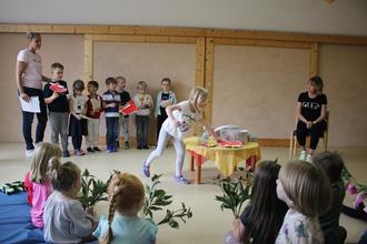 Die Vorschulkinder überreichen Herzen und Danksagungen
