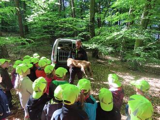 In der Zeit vom 09.05. bis 13.05.2025 erlebten die Vorschulkinder eine spannende und lehrreiche Woche im Wald. Jeden Tag gingen sie bei herrlichem Wetter, bepackt mit ihrem Rucksack, einen steilen Berg hoch bis zum Waldklassentimmer. Dort begann der Tag mit dem Singen des Waldliedes, einem stärkenden Frühstück und freiem Spiel im Wald. Mit vereinten Kräften und unter Beachtung der Waldregeln erkundeten sie die Umgebung, bauten ein Tipi, gruben Gänge für kleine Käfer und bauten sich ein Waldsofa. Während des Projektes entdeckten die Kinder faszinierende Dinge. Durch den Förster Herrn Golditz sahen sie präparierte Tiere, erfuhren Wissenswertes über deren Lebensweise und durften sogar Felle und einen echten Wildschweinschädel anfassen. Ein besonderes Highlight war die Beobachtung einer Baumfällung und das Sitzen in einer Waldmaschine, die man zum Schleppen der Bäume benötigt. Als Erinnerung erhielten sie Baumscheiben, in die sie Nägel hämmerten und Gummis spannten. Beim selbständigen Schnitzen und Sägen wurden sie mit dem sicheren Umgang mit Werkzeugen vertraut gemacht. Bei verschiedenen Waldspielen stellten sie Teamgeist und Geschick unter Beweis, etwa beim Löschen eines imaginären Waldbrandes mit Hilfe von Wasserkellen, beim Lösen eines Ratespieles oder beim Legen eines kreativen Bildes mit Waldschätzen. Bei einer Wanderung durch den Wald gab es als Belohnung sogar ein Eis. Den krönenden Abschluss bildete eine aufregende Schatzsuche, bei der sie mit viel Eifer dabei waren.
