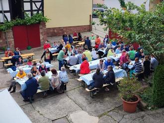 Der Hof war zünftig hergerichtet, die Weißwürste heiß, die Brezel frisch und das Bier zischte. Eine wunderbare Voraussetzung für einen schönen Sonntag Vormittag.