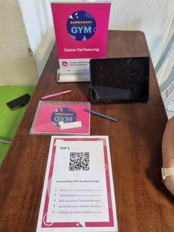Demokratie und Teilhabe wird in der Einrichtung der beiden Jugendsozialarbeiterinnen im „Haus für Jugend und Soziales“ schon gelebt. Doch die Jugendgruppe entschied sich, noch tiefer in die Thematik einzusteigen. So konnten die Jugendlichen aus dem offenen Jugendtreff sich aktiv bei dem Projekt „Democracy GYM“ von Medien und Bildung RLP beteiligen. Bei diesem tollen Projekt konnte den Jugendlichen die Bedeutung von Demokratie in ihrer Lebenswelt verdeutlicht werden. An den verschiedenen Stationen konnten sich die Teilnehmer/innen mit Fragen und problemlagen des demokratischen Miteinanders beschäftigen. Mit Hilfe von Tablets und verschiedenen Medien wurde das ganze jugendgerecht durchgeführt. Die Gruppe beschäftigte ich mit Themen wie die eigenen Grundrechte und stellten die für sie wichtigsten heraus. Auch wurden verschiedene Poster bzw. Plakate zu einem selbst gewählten Anliegen in einer kurzen Forderung erarbeitet. Auch das Thema Diskriminierung wurde an einer Station aufgegriffen.