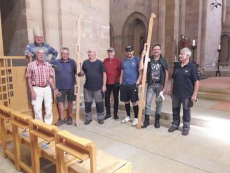 Das Collegium Musicum der Universität Saarland zeigte, wie berichtet, eine hinreißende Aufführung von englischer Musik für Chor und Orchester in unserer wunderbaren Abteikirche. Dass auch ein solches Konzert nicht ohne ehrenamtliche Hilfe möglich ist, ist nicht jedem bewusst. Die oft berufene Einsatztruppe des Waldbauvereins hat wieder zugeschlagen. Wenn Herbert Brand ruft, kommen genügend Helfer im Rentenalter, um die Bühne für eine Vorstellung vorzubereiten und auch später wieder abzubauen. Gemeindediakon Torsten Zimmermann stellt immer den Kontakt zum jeweiligen Orchester her und weiß, welche Bühnenteile in welcher Höhe vor dem Altar aufgebaut werden sollen. Hier ein Bild der fleißigen Helfer beim Abbau der Bühne am Montagmittag.