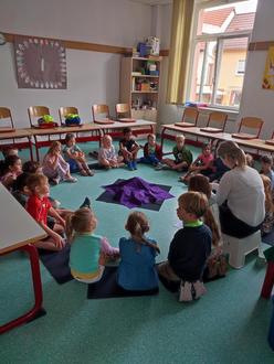 Neben dem Patentag und einem Besuch der Lehrer in den Kindertagesstätten, findet jedes Jahr ein Projekttag in der Ottfried Preußler Grundschule statt. Die Vorschulkinder der Städt. und der Evangelischen Kita besuchten voller Aufregung die Grundschule und lernten dort im Klassenzimmer zuerst einmal Regeln kennen, die für den Schulalltag von Bedeutung sind Anschließend lasen die Schulkinder einen Brief des Schulgespenstes ihren Gästen vor. Oskar, das Schulgespenst fordert darin die Kitakinder auf, sich mit dem Element Luft zu beschäftigen, da er darin Experte ist. Jedes Kind erhielt eine Laufkarte und wurde von den Großen zu den verschiedenen Stationen geführt. Dort durften sie Schlangen und Papierflieger basteln, Wasserblasen machen und Gegenstände mit Hilfe von Luft in die Höhe fliegen lassen. Wer seine Aufgaben erledigt hatte, bekam einen tollen Strempel. Im Klassenzimmer bearbeiteten sie dann ein Arbeitsblatt, welches da Thema Luft noch einmal aufgriff.