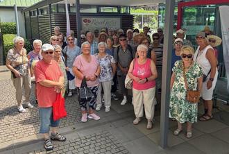 Um 17 Uhr hieß es dann wieder: alle einsteigen, wir haben noch einen weiteren „Programmpunkt“. Unser Bus fuhr uns nach Hauptstuhl, wo wir zum Abendessen in einem sehr schönen, gemütlichen Biergarten Platz nahmen. Hier nutzten alle die Gelegenheit, den schönen Tag bei einem Gläschen Wein oder Bier noch einmal vorbeiziehen zu lassen, bevor es wieder Richtung Heimat ging.