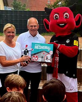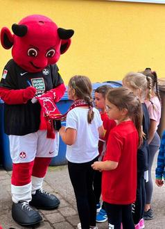 Am Dienstag, 2. Juli 2024 war die Aufregung groß bei den Schülerinnen und Schülern der Grundschule Katzweiler: Zwischen den letzten Klassenarbeiten, Planungen für Abschlussfeiern und dem „ganz normalen Wahnsinn“ vor den Sommerferien überraschte Herr Wolfgang Kurz, aus der Kanzlei Kurz & Sanchez und Vater einer Viertklässlerin die Kinder und Lehrer mit einer tollen Aktion: Er hatte den 1. FCK mit seinem Maskottchen Betzi für eine Bewegungszeit nach Katzweiler geholt!