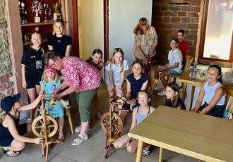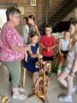 Seit mehr als zwei Jahren leitet Traudel Bachmann im Bürgerhaus die Strick- und Häkelstunde für Kinder im Grundschulalter. An jedem Dienstagnachmittag gab es im Bürgerhaus ein Stelldichein von begeisterten Händen, die das geschickte Hantieren mit Wolle und Nadel lernen, üben und immer wieder verbessern wollten. „Nach allen den Übungsstunden haben die Kinder es schon sehr weit gebracht. Mit der Fertigkeit können sich die meisten auch schon sehr gut selbst weiterhelfen. Das war auch das Ziel“, so die Übungsleiterin. Nun geht mit dem Schuljahr auch diese ehrenamtliche Lehr- und Lernstunde für das beliebte Handarbeitsgewerk zu Ende, aber nicht bevor man mal selbst erfahren hat, wo und wie es zu der schönen Wolle überhaupt kommt, mit der man Pullover, Stofftiere und Strümpfe stricken kann. Auf drei Spinnrädern konnten die Kinder mit eigenen Händen erfahren, wie viel Geschick man braucht, um einen Faden zu spinnen. „Um aus einem Bündel echter Schafswolle, nur einmal gewaschen und gekämmt, eine ganze Fadenspindel voll zu machen, braucht man Geduld und jede Menge Übung“, erklärt Edith Liebel, die das Projekt mit unterstützt hat. Allein der leichte Geruch nach Schaf, das natürliche Fett der Wolle, ist für viele eine neue Erfahrung; nicht unangenehm, aber ungewohnt. Mit Eifer fädelten die kleinen Hände die Wolle zu einer dünnen Schnur und die Füße brachten das Spinnrad in Schwung. „Man muss dabei aufpassen, dass das Rad sich auch immer in die richtige Richtung dreht“, weiß Clara, die mit ihren Füßen gerade so das Pedal erreicht. „Das war eine tolle Stunde, eine ganz tolle Erfahrung, dass man das Spinnen mal ausprobieren durfte“, so die einhellige Meinung der Kinder, die sichtlich viel Spaß hatten. Vielen Dank an Traudel Bachmann für das ehrenamtliche Engagement über Jahre hinweg, für die Geduld und das Einfühlungsvermögen, den Schulkindern – Mädchen wie auch Jungs – diese traditionsreiche Handarbeit näherzubringen. Diese kreativen Hobby-Stunden waren alle kostenlos – aber garantiert nicht umsonst.