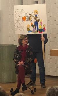 Am 14.12.23 wurde Esther Alfter-Mieves im Rahmen eines Familiengottesdienstes von der ev. Kita „Am Himmelreich“ nach über 30 Jahren in ihren wohlverdienten Ruhestand verabschiedet. Bescheiden und im Hintergrund sollte ihr Abschied vonstattengehen. Aber da hatte sie die Rechnung ohne ihr Team, der großen Kita-Familie und natürlich ihre eigene und ohne die vielen Freund*innen gemacht. Die Christuskirche war gut gefüllt und weite Anreisen von der Nordsee und aus NRW von ehemaligem Kolleginnen wurden nicht gescheut. Doch natürlich hatte Esther zunächst den Gottesdienst mit Gitarre und Herzblut begleitet und mitgestaltet. Aber dann … dann durfte sie vorn im Altarraum auf ihrem Erzieherstuhl Platz nehmen und sich feiern lassen. Und natürlich hatte es sich die Kita-Leiterin Michaela Wohlwend nicht nehmen lassen, eine Laudatio zu halten. Dies tat sie mit warmen und herzlichen Worten, wobei sie den Herzensmenschen Esther und deren vielfältigen Talente in solch lebendigen Farben malte, dass so manches Taschentuch benötigt wurde. Vom musikalischen über den religionspäd.bis hin zum medizinischen Bereich, Esther ist kompetent und hinterlässt große Lücke. „Manche Menschen machen die Welt besonders, weil sie einfach da sind.“ Damit brachte es Wohlwend auf den Punkt und schloss mit einer großen Verbeugung: „Es war mir eine Ehre, dich in meinem Team zu haben.“ Ihr schlossen sich noch zahlreiche Gratulant*innen an. Pfarrer Benjamin Leppla, der den Gottesdienst leitete und Dekan Matthias Schwarz sowie eine Elternvertretung. Mit dem Segenslied „Geh` auf deinem Weg getrost und ohne Sorgen“ gesungen von der ganzen Kita-Familie wünschte diese Esther von Herzen alles Gute und Gottes guten Segen für ihren neuen Lebensabschnitt.