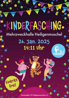 Ein frohes neues Jahr wünscht euch der TC Heiligenmoschel. Wir laden euch herzlich ein zum lustigen Kinderfasching, um die närrische Kampagne zu starten! Am 26.01.2025 ab 14:11 Uhr geht's los in der Mehrzweckhalle in Heiligenmoschel.