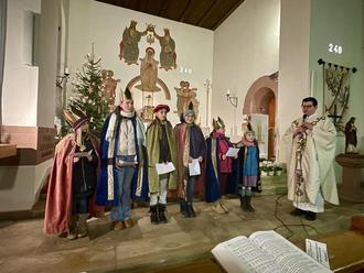 Pfarrer Dr. Hartmüller feierte die Heiligen Mess am Samstagabend mit den Sternsingern und der Gemeinde. Dabei bedankte sich Marco Zäuner, Vorsitzender des Gemeindeausschusses, bei den Kindern, den Begleitern und Helfern für die Organisation. Die Aktion erbrachte einen Betrag von mehr als 2800,-€ für die Hilfsprojekte. Allen Kindern und Helfern, allen offenen Türen, allen offenen Herzen und allen Spendern ein herzliches Dankeschön und Gottes Segen dafür.