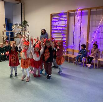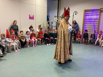 Die Vorfreude auf die bevorstehende Nikolausfeier war in den Tagen zuvor überall zu spüren: lachende Gesichter, fröhliches Geplapper und eine große Portion Aufregung erfüllte die Kita. Am 05.12.2025 war es endlich so weit. Das Programm wurde vielseitig und lebendig gestaltet, nicht zuletzt dank der Kinder, die im Vorfeld aktiv an der Planung beteiligt waren. Nachdem sich alle im vorweihnachtlich geschmückten Turnraum eingefunden hatten und Pfarrer Hartmüller nicht nur von Bischof Nikolaus erzählte, sondern dabei auch die passenden Requisiten anlegte, staunten besonders die Jüngsten über die Verwandlung. Mit funkelnden Augen verfolgten sie, wie Pfarrer Hartmüller Schritt für Schritt in die Rolle des heiligen Nikolaus schlüpfte. Daraufhin präsentierten die Kinder ihr Programm, das mit großer Begeisterung von allen verfolgt wurde. Es wurde getanzt, gesungen, mit Instrumenten musiziert und ein Gedicht vorgetragen, in dem an erster Stelle nicht das Materielle stand, sondern Wertschätzung, Gemeinschaft und füreinander da zu sein. In dieser warmen und feierlichen Atmosphäre wurde die Nikolausfeier zu einem besonderen Erlebnis, sowohl für das Kita-Team als auch für den Nikolaus selbst.