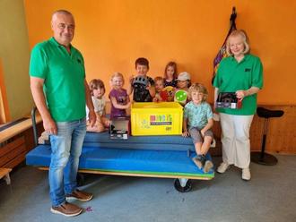 Mit finanzieller Unterstützung der Verkehrswacht Kaiserslautern und Umgebung haben die Kinder der Kita Mehlbach eine „Move It Box“ erhalten.