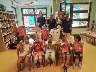 Am 28.06.2023 besuchte uns die Zahnarztpraxis Dr. Schoppe aus Otterberg. Zu Beginn war ein Tisch aufgebaut, auf dem sich verschiedene Lebensmittel befanden, sowie ein grünes und rotes Tuch. Die Kinder sollten nun die Lebensmittel den entsprechenden Farben zuordnen. Rot war schlecht für die Zähne und Grün gut. Im Anschluss durften alle nacheinander ein ungesundes Lebensmittel nennen und ein Bakterium auf einen großen Zahn kleben. Nachdem der Zahn voll mit Bakterien war, konnten die Kinder dann mit Hilfe einer großen Zahnbürste wieder alle Bakterien weg putzen. Dann kam das Pferd und zeigte uns sein schönes sauberes Gebiss und erklärte den Kindern, wie man richtig Zähne putzt. Dazu sollten sich die Kinder den Namen,, KAI“ merken (Kaufläche-Außenfläche-Innenfläche). Anschließend durften die Kinder dem Pferd die Zähne putzen. Zum Schluss bekam jedes Kind noch ein kleines Geschenk, worüber sich jeder sehr freute. Es war ein schöner Vormittag und wir bedanken uns herzlich bei Dr. Schoppe und seinem Team.