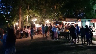 Das im letzten Jahr ins Leben gerufene Weiherfest in Katzweiler hat sich zu einem riesigen Event entwickelt. Ortsbürgermeister Sven Rheinheimer hat ein schwimmendes Floß zum Auftritt einer Live-Band gebaut. Ein Lichtermeer auf dem See, um den Teich und in den Bäumen verbreitet ein tolles Stimmungsbild um den See.