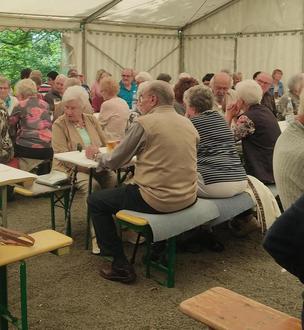 Am 29.Juli fand der diesjährige Seniorennachmittag statt. Das Wetter spielte auch mit sodass man von einem gelungenen Nachmittag sprechen konnte. Für musikalische Unterhaltung sorgte Iris Kannegiesser-Rosewald und die Bewirtung übernahm der Pfälzerwaldverein. Dafür vielen Dank. Mein weiterer Dank geht an die Kuchenspender, die mit 20 Kuchen für reichlich Abwechslung sorgten. Den ca.100 anwesenden Gästen überreichte Frau Rihlmann von der Kreisverwaltung(Dorfschwester)nach Erklärung der Handhabung eine Notfalldose, die freudig entgegen genommen wurde.