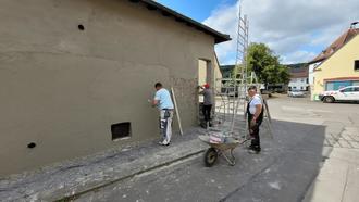 ein weiterer großer Schritt wurde am Milchhäuschen dank meiner Arbeitsgruppe und einem Mitarbeiter der Verbandsgemeinde in drei Tagen erledigt. Es ist komplett verputzt und wartet lediglich auf den Anstrich.