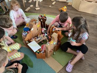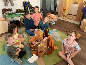 Einige Kinder haben sich in der katholischen Kita Arche Noah mit dem Leben auf einer Burg im Mittelalter beschäftigt. Es wurde eine Burg aufgebaut und viele kreative Spielideen entwickelt, sodass daraus ein Projekt entstanden ist. Für ein Burgfest wurden Instrumente und Girlanden gebastelt. Die Kinder lernten mittelalterliche Musik kennen. Aus Prospekten wurde Essen ausgeschnitten, was auf einem Fest nicht fehlen darf. Das entstandene Rollenspiel war phantasiereich und die Kinder hatten ihren Spaß.