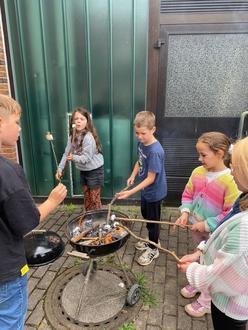 Von Dienstag bis Donnerstag verbrachten wir unsere Zeit rund um die Grillhütte im „Himmelreich“. Dort gestalteten die Kinder fantasievolle Baumgesichter aus Naturmaterialien und bauten ein kleines Waldlager. Mit Begeisterung wurden geeignete Äste gesucht, um anschließend Stockbrot und Marshmallows über dem Feuer zu grillen.
