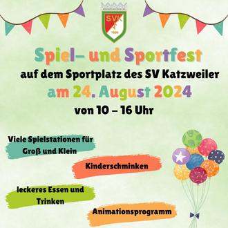 Auch in diesem Jahr darf unser traditionelles Spiel- und Sportfest nicht fehlen! Kommt am 24. August zum Sportplatz des SVK und verbringt von 10 - 16 Uhr einen schönen Tag mit uns.