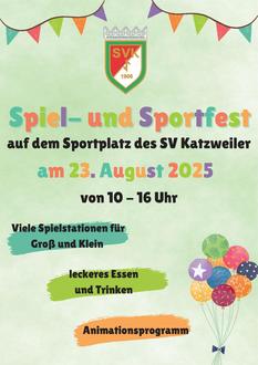 Kommt am 23. August zum Sportplatz des SV Katzweiler und verbringt von 10:00 - 16:00 Uhr einen schönen Tag mit uns.