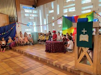 Aufgrund der hohen, sommerlichen Temperaturen war die Abschiedsfeier vom Spielplatz in die Christuskirche verlegt worden. „Jedem Anfang wohnt ein Zauber inne“, zitierte die Kindergartenleiterin Michaela Wohlwend in ihrer Begrüßung passend zum Anlass Hermann Hesse. Auch die Kinder begrüßten die Eltern und stellten ihnen die vielen Unternehmungen vor, die ihnen den Weg hin zur Schule geebnet hatten.