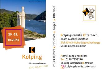 Die Kolpingsfamilie Otterbach lädt ein zur großen Glockenspieltour 2023 in das romantische Obere Mittelrheintal vom 20. bis 23. Oktober nach Bingen am Rhein. Mit Übernachtung in der Rhein-Nahe-JH hoch über Bingen. Eine Erlebnistour zwischen Berg und Tal, Seilbahn und Schiff, Burgen und Denkmäler rund um das Binger Loch, mit Spiel und Spaß für Groß und Klein, eben Kolpingsfamilie.