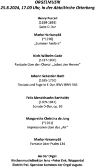 | 17.00 Uhr | Orgelkonzert in der Abteikirche |