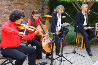 Das Programm „Wie Windeswehen in gemalten Bäumen“, ein musikalisch-literarisches Portrait der jüdischen Dichterin Mascha Kaléko, lockte 140 Gäste nach Otterberg. Und sie waren begeistert – vom sehr gelungenen Vortrag des Duo „Wortlaut“, Schauspieler Rainer Furch und Autorin Madeleine Giese, und der Musik des begleitenden Duo „IC strings“, Caroline Busser, Violoncello und Ivan Knezevic, Violine, seit einigen Monaten auch Otterberger Bürger.