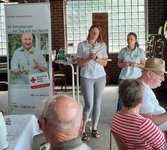 Im Anschluss gab es einen Interessanten Vortrag vom Roten Kreuz für die Selbstständige Notruf-Hilfe. Über einen Knopf, Armbanduhr oder eine Kette die am Körper getragen werden, kann per Knopfdruck eine direkte Sprechverbindung zum Hausnotruf hergestellt werden. Sollte man nicht selbstständig dazu in der lage sein oder nicht Ansprechbar sein, kann z.b. die Armbanduhr oder die Mobile Box selbstständig reagieren und einen Notruf absenden. Diese Notrufanlage kann zu jeder Tages und Nachzeit in Anspruch genommen werden. Rettungsdienste können somit schnellstmöglich vor Ort sein. Der Vortrag war sehr interessant nächsten Monat gibt es dazu nochmal einen erweiterten Vortrag.
