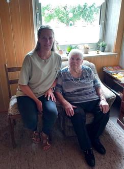 Auf dem Bild ist die Jubilarin Emmi Keller u die Ortsvorsteherin Natascha Martin