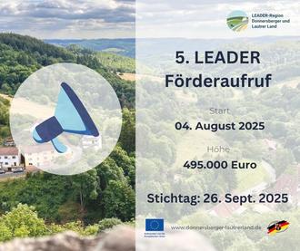 Am 04. August 2025 startete der fünfte LEADER-Förderaufruf der LAG Donnersberger und Lautrer Land. Interessierte öffentliche, private wie auch gemeinnützige Personen und Institutionen haben noch bis zum 26. September 2025 die Möglichkeit, ihre Projektideen beim Regionalmanagement einzureichen.