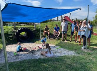 Morbach(hw): Am Samstag, 07.09.24 wurde das neue Sonnensegel auf dem Morbacher Spielplatz nunmehr offiziell eingeweiht. Bei strahlendem Sonnenschein konnten sich Eltern, Kinder und Verantwortliche des Fördervereins Morbacher Freunde vom Sonnenschutz im Bereich des Sandkastens überzeugen.