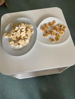 Heute waren es getrocknete Bananenchips und frische Bananen.