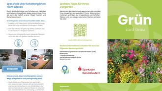 Gleiches gilt für Schottergärten. Daher hat unsere Alte Welt Gemeinschaft einen Flyer mit dem Motto Grün statt Grau erstellt. Mit diesem Faltblatt sollen sie motiviert und informiert werden, dass sie ihren Garten oder auch Vorgarten klima- und insektenfreundlich gestalten. Diesen Flyer können sie auf der Homepage der Verbandsgemeinde herunterladen.