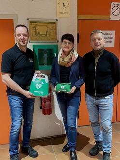 Sven Rheinheimer, Claudia Buser u. Manfred Wilking an dem Notfallgerät
